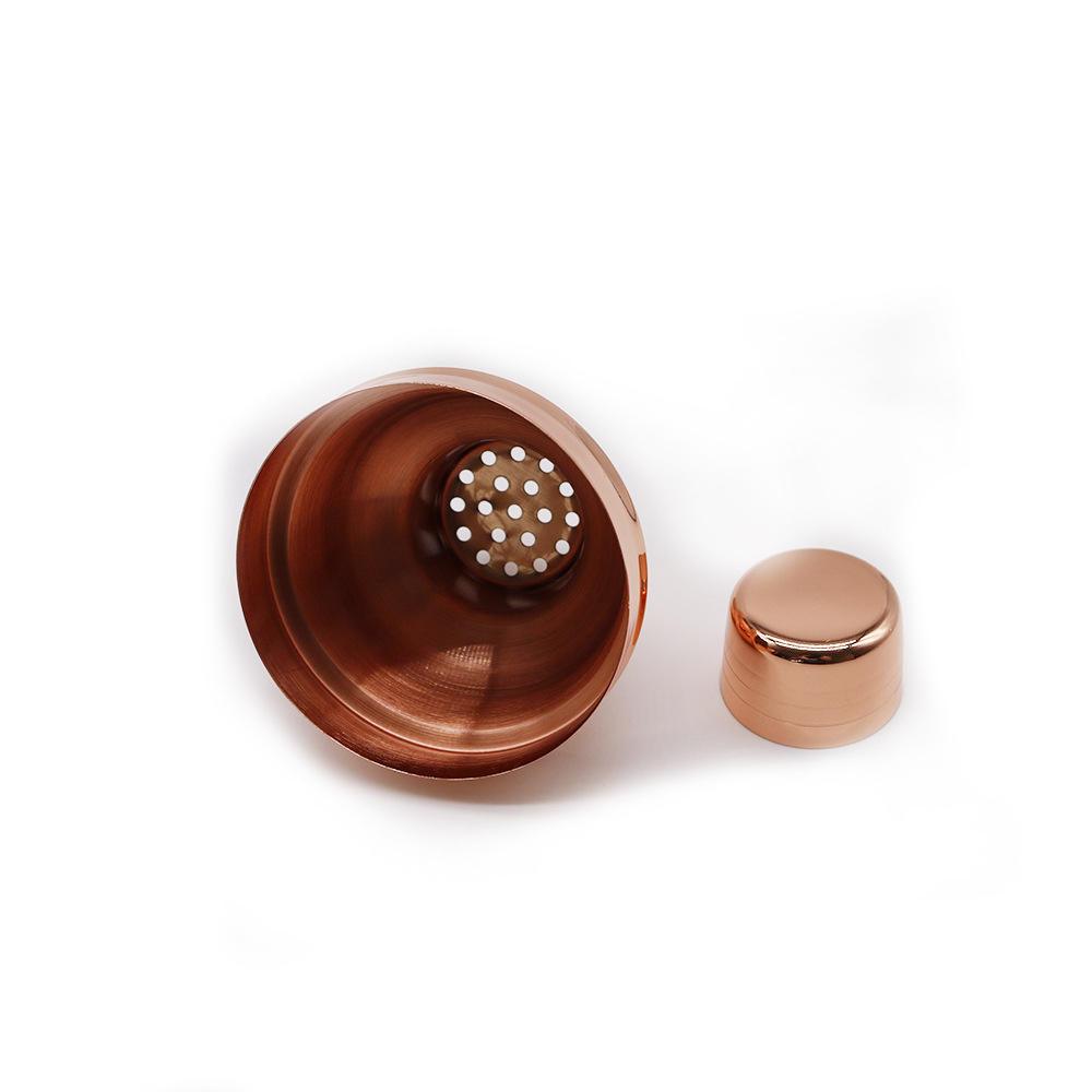 Shaker à cocktail d'une capacité de 550 ml en acier inoxydable et revêtement extérieur en cuivre galvanisé. Avec fermeture de sécurité et bouchon doseur sur le dessus.