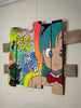 Les matériaux utilisés pour créer mon tableau sont: des copies de bandes dessinées , peinture et feutres acrylique, bombes de peinture et une finition avec du vernis mat pour une protection optimum, créant ainsi un tableau « FANART » qui trouvera sa place dans une de vos pièces de vie.
