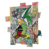 Ce tableau offre ainsi une célébration moderne de l'univers d'Astérix, fusionnant art contemporain et culture populaire, tout en mettant en valeur les matériaux récupérés et les techniques mixtes.