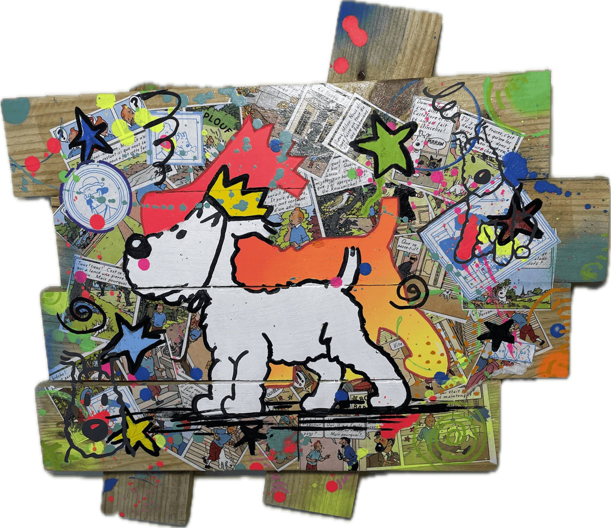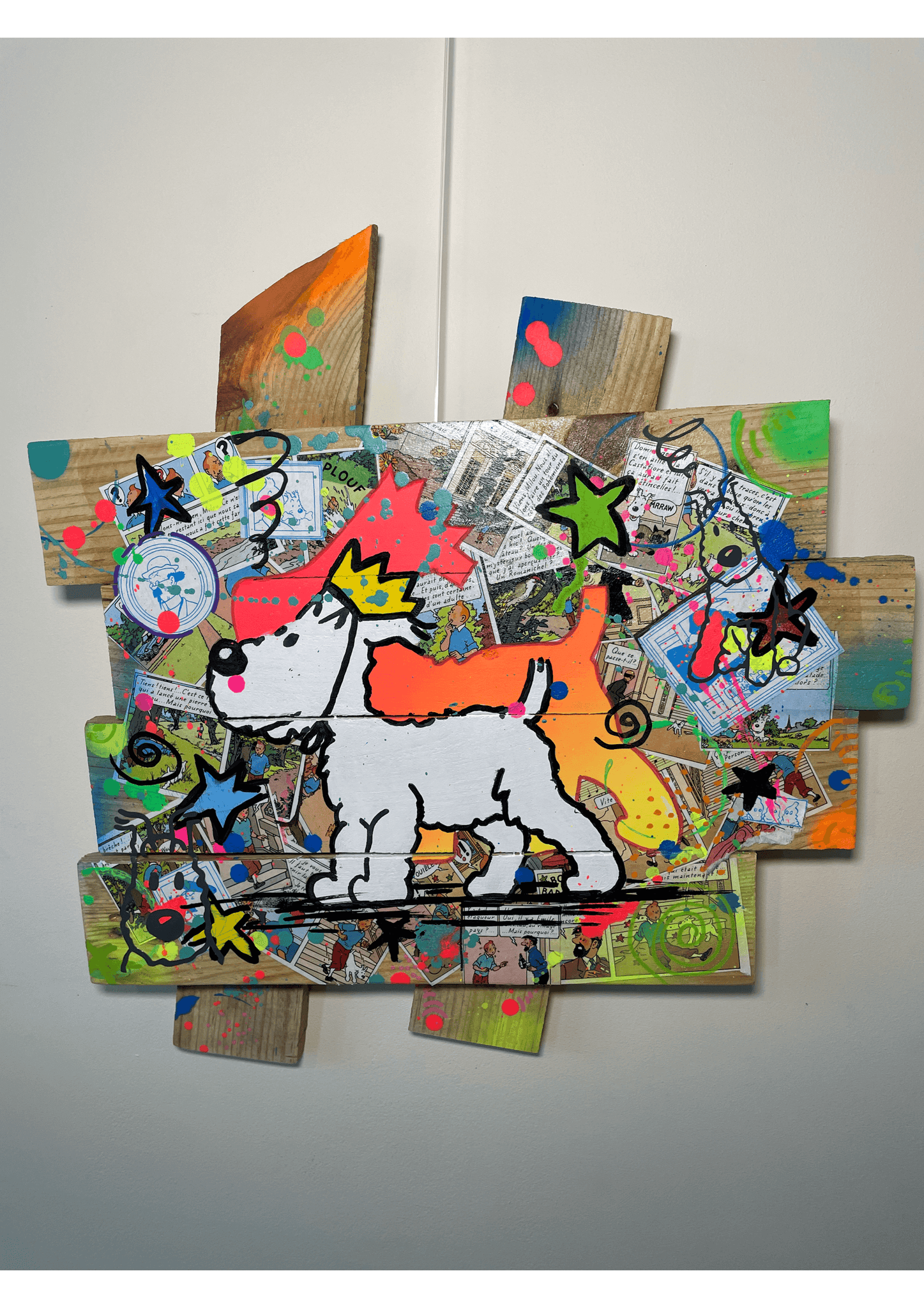 Cette création du type Pop art représente le chien de Tintin Milou.
