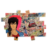 L'œuvre artistique combine plusieurs techniques et matériaux pour créer un hommage graphique au célèbre personnage de manga. La structure de base utilise des planches de palette récupérées, offrant une texture brute et industrielle qui contraste avec l'esthétique colorée du Pop Art.
